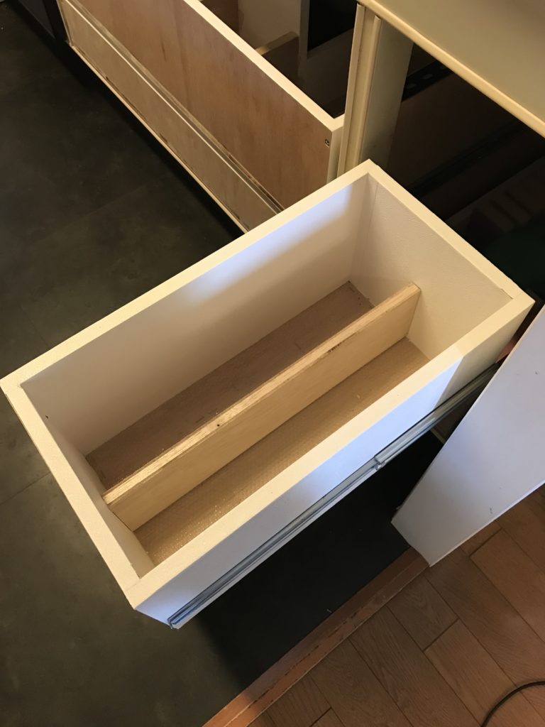 DIYで作った仕切りを設置し収納してみる