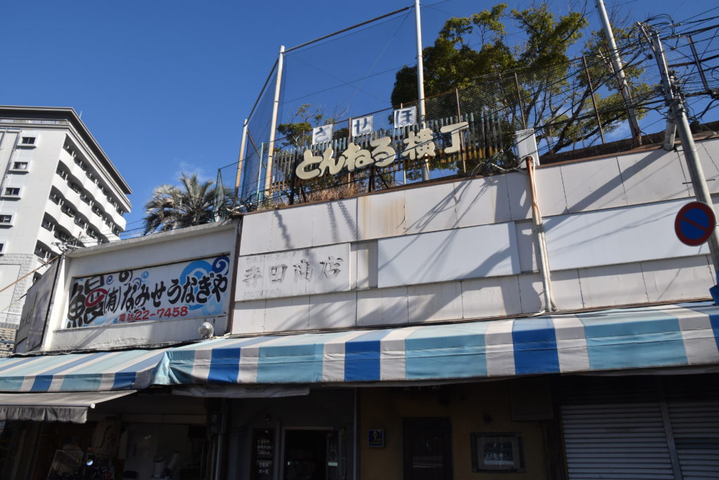 観光センターの方に聞いた「とんねる横町」。戦時中の防空壕がそのまま店舗として使っているとのこと。その中で、「井上蒲鉾店のアリマドを食べていけ!」との指示の通り、アリマドを買ってみる。
