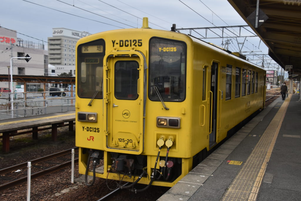 肥後本線は大分につながり、九州を横断する路線なのだが、途中駅の肥後大津駅からの列車はかなりローカル。1両編成だ。九州の電車って、2両編成が当たり前みたいだから、1両編成はもうビックリしない。