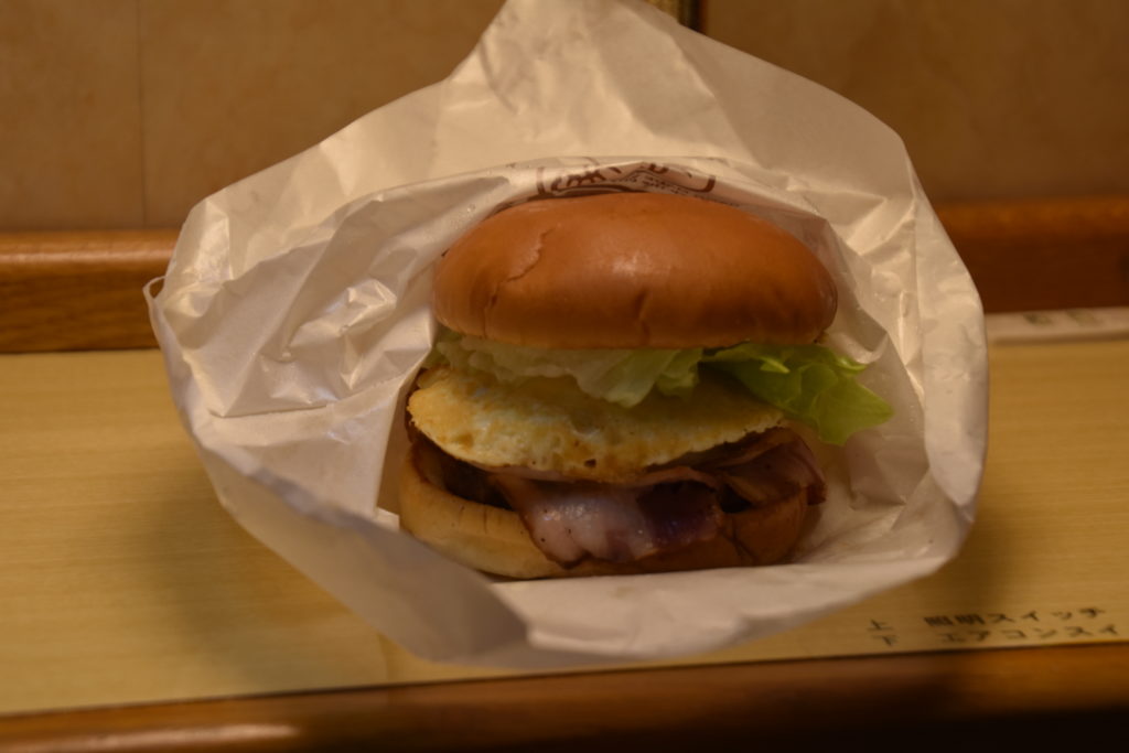 夜の繁華街に繰り出してみる。人は少ないねえ。佐世保って有名な街だけど、平日の繁華街はこんなもんなんだね。佐世保バーガーでしょ!ということで、まずはこれ!Big Manというところの佐世保バーガー。